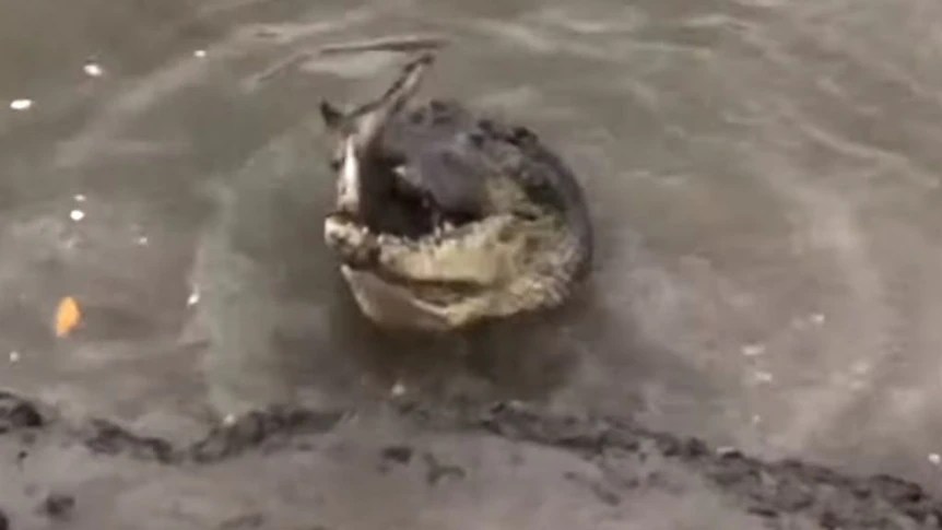 North Queensland fishers in awe as crocodile eats shark in Proserpine River