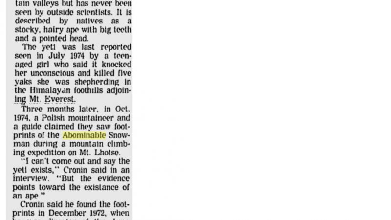 Abominable snowman is reportedly well and living in Soviet Union